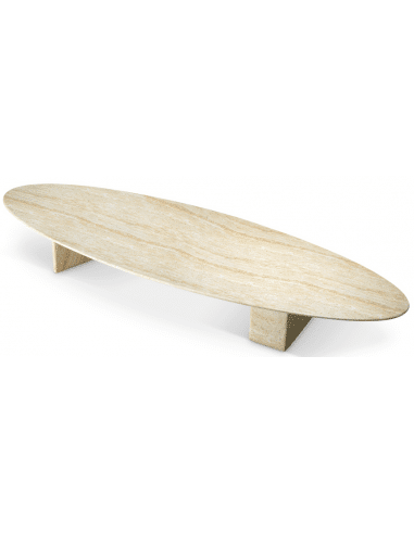 Aurora lounge havebord fra hollandske Eichholtz, udført i et design af travertinfarvet sten. Bordet måler 28,5 cm i højden og imponerende 240 x 80 cm i bredde og dybde.