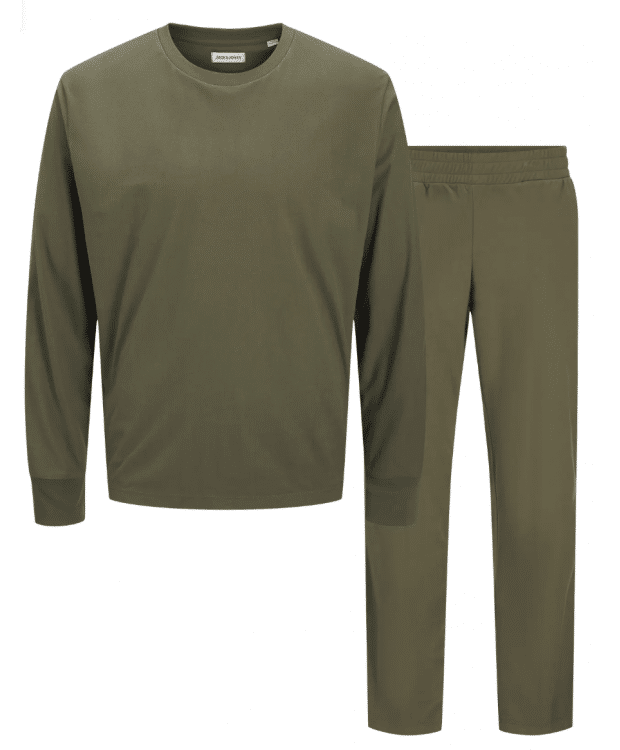 JACSOLID LOUNGE SET W NOOS er designet til afslapning og komfort. Fremstillet i blød single jersey af 100% polyester, der gør sættet let, slidstærkt og behageligt at have på.Sættet består af en Langarmet sweater og matchende Sweatpants i farven Grøn, hvi